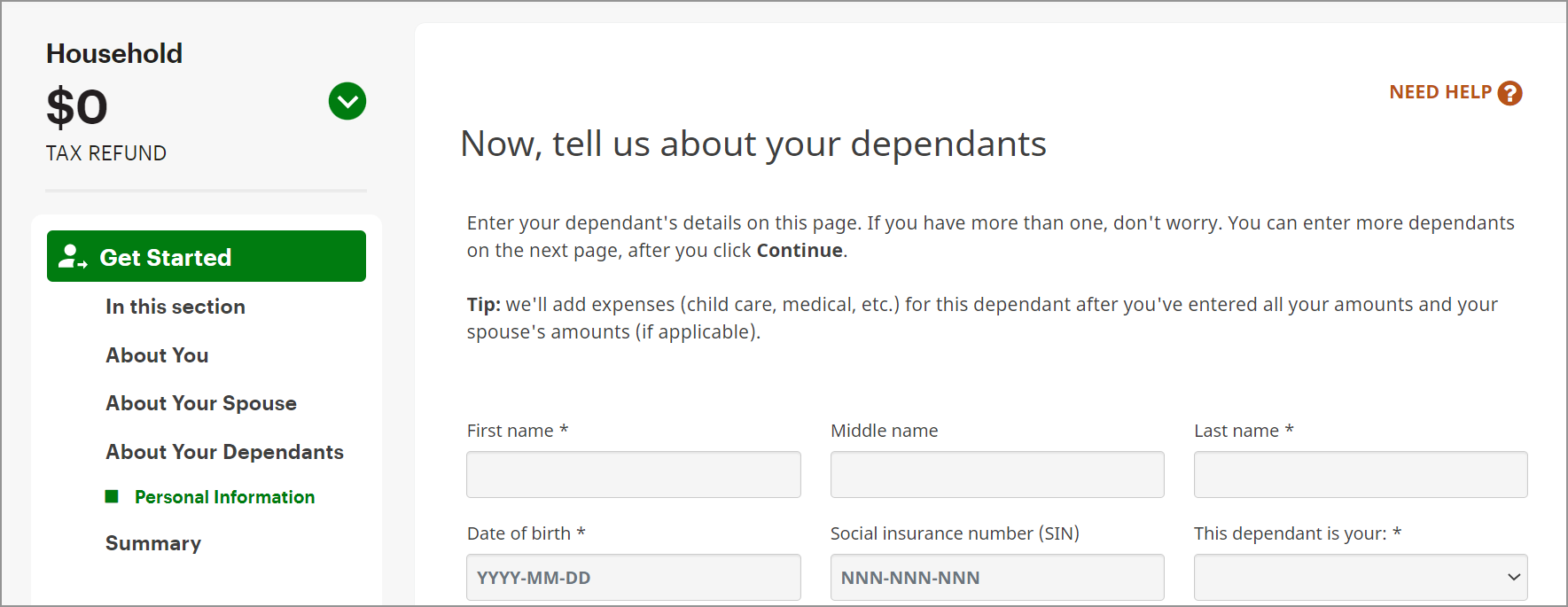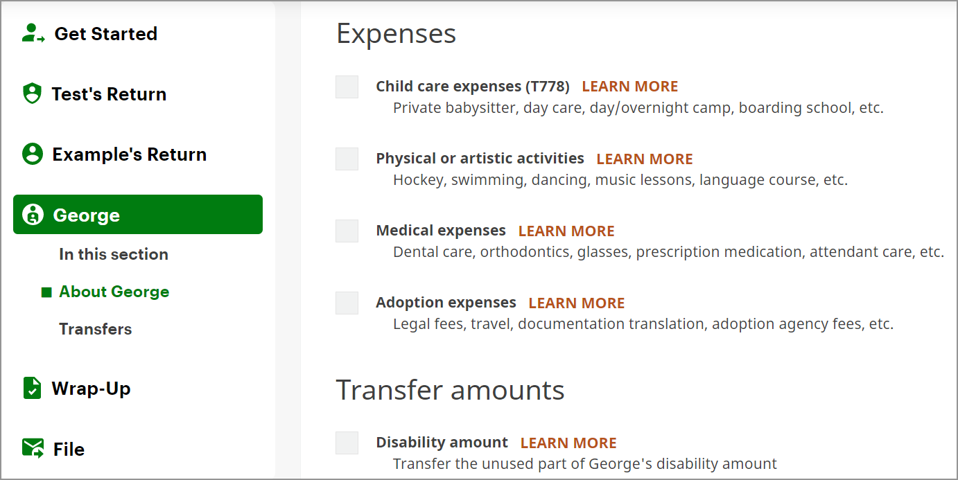Now that you’ve added your dependant to your return, you can claim their expenses. To do this: